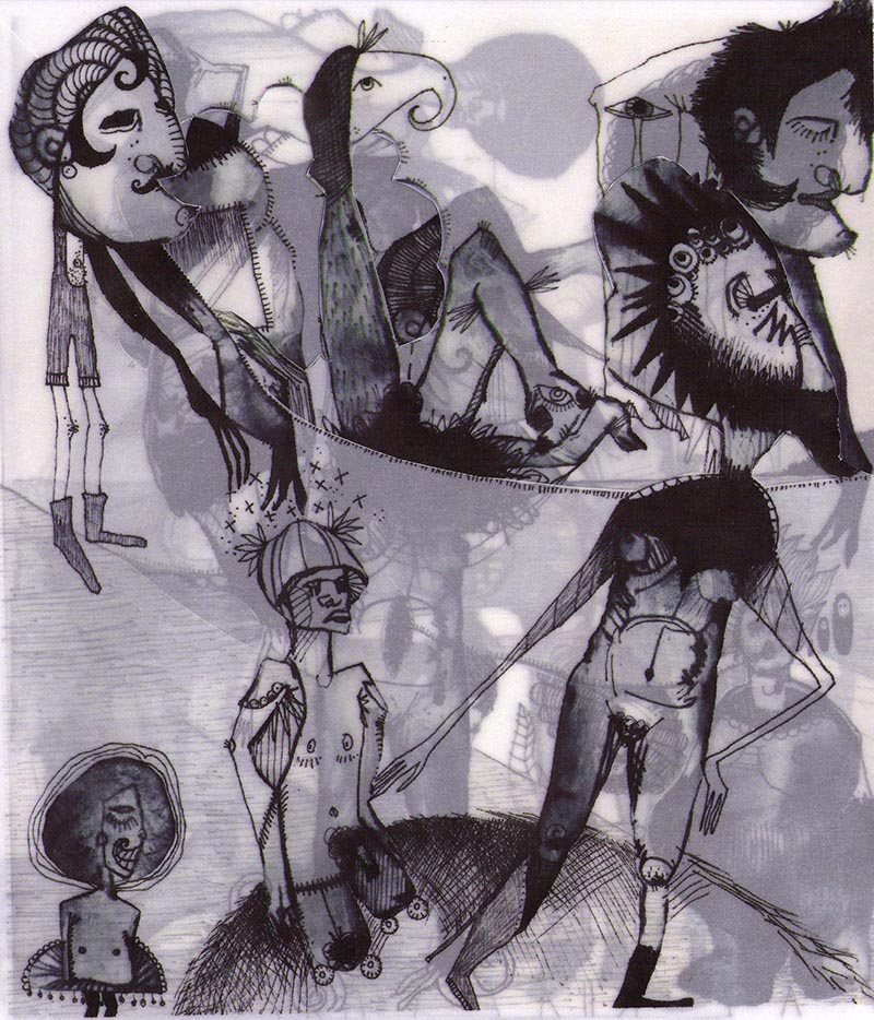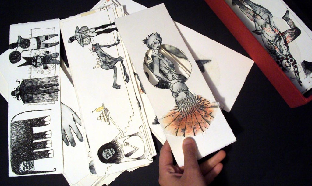 Circus Jocularius 2009 Artist's book 32 digital offset prints cut vertically into 3 parts, spiral binding 32 pages 29x 14.5 cm