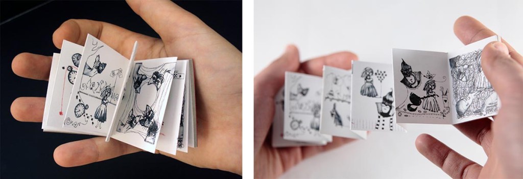 M’alice 2009 artist's book 14 digital offset prints, accordion binding 16 pages 5 x 4 x 1 cm Similar project : https://helalamine.com/2021/03/28/alice-a-lheure-de-leclipse/
