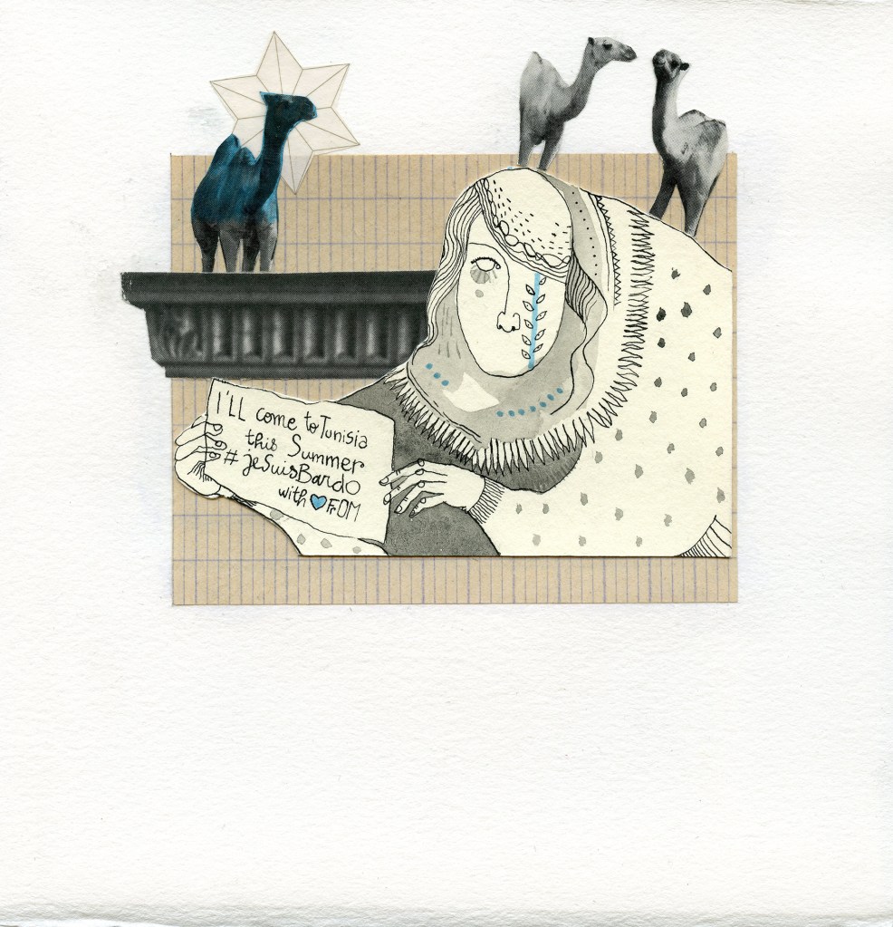 3ajel tounes (Tunisia Emergency) Curated by Aicha Gorgi Talan 2016 21 mixed media on Arches paper, 26x26,5 cm (each one) 2016