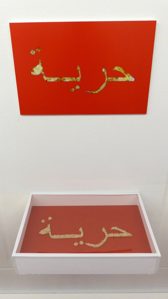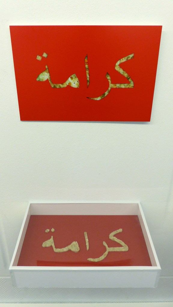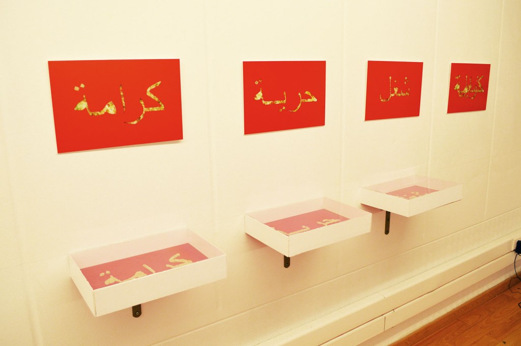 (from right to left) « Work », « Freedom » and « Dignity » (in arabic)