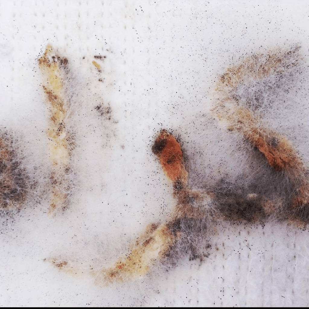 mop. A white laminated cardboard. A Plexiglas stencil of the