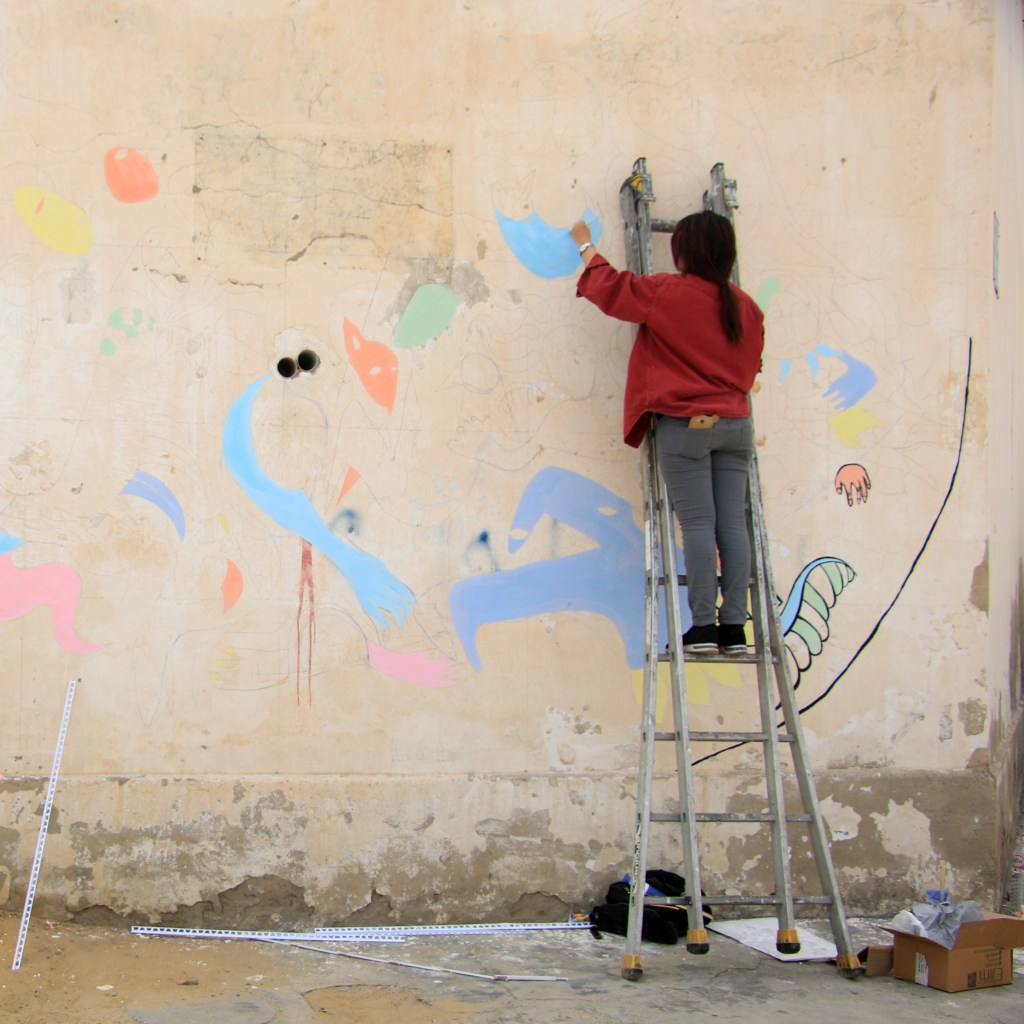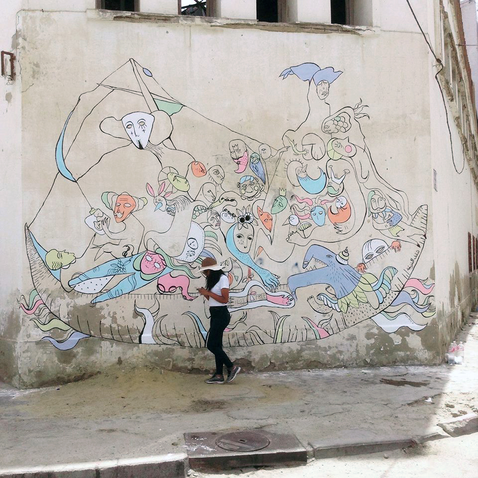 fresco « ch9af El 7orrigua » (boat of the jellyfish) which is a fresco made on July third of twenty eighteen in Sousse, during the artist residency “Utopies visuelles” « Visual Utopias » organized by the gallery Elbirou.