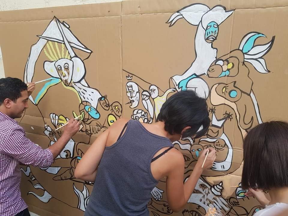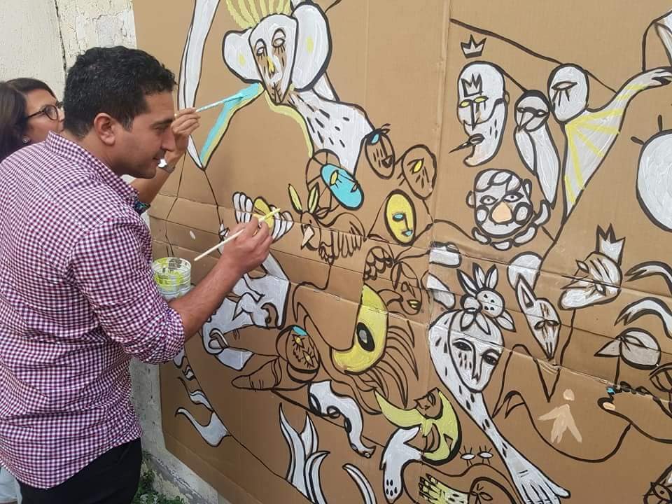 The « boat of the jellyfish » remains visible to the day on one of the walls of the old post office building in « b7ar ezzebla » (sea of garbage) It was important to have this participatory work in a public space, where the ownership of the work is communal. Ultimately the mural belongs to this neighborhood and to the public.
