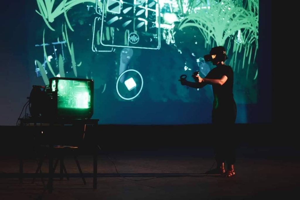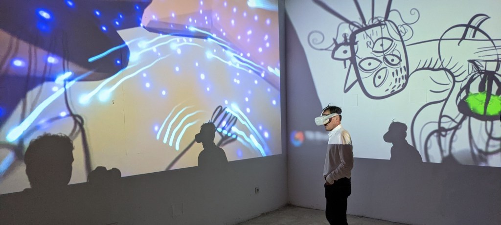 // Immersive live performances, lasting around twenty minutes, engaging an audience in virtual reality drawing. A graphic and choreographic journey within the « Still Life » universe
